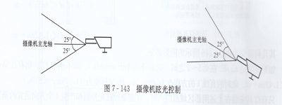 c. 嚴(yán)格控制對(duì)攝像機(jī)的眩光。即不得向主攝像機(jī)視野反射靜水表面的光,燈具發(fā)出的光線也不得直接投向固定攝像機(jī)。如不直接照射以固定攝像機(jī)為中心的50°扇形區(qū)域則更為理想。如圖7-143