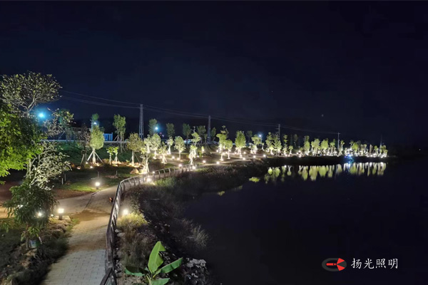 對沿湖景觀進(jìn)行照明,形成統(tǒng)一延伸的湖岸線。在親水平臺外,設(shè)置親水性的發(fā)光燈具,增添一定的游玩觀賞性和趣味性,營造優(yōu)美,和諧的新鄉(xiāng)村環(huán)境。