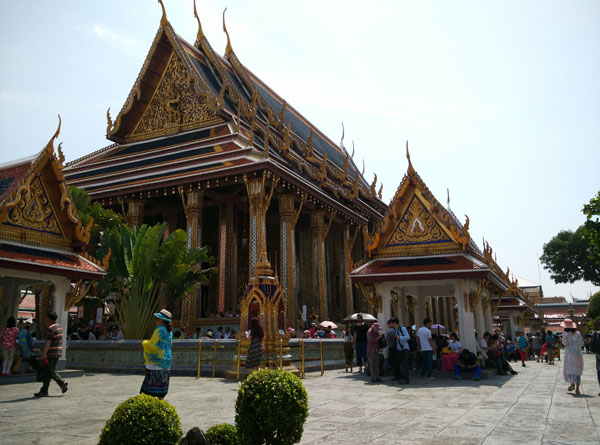 在曼谷這個(gè)兼具古老氣息和現(xiàn)代風(fēng)情的城市,處處充滿著贊嘆與美麗的地方,參觀了宏偉壯觀、金碧輝煌的大皇宮,精致美觀的佛像、石雕和繪畫(huà),在長(zhǎng)年青綠的椰林掩映下的古跡,為泰國(guó)妖媚動(dòng)人的熱帶風(fēng)光增添了無(wú)限絢麗的色彩。