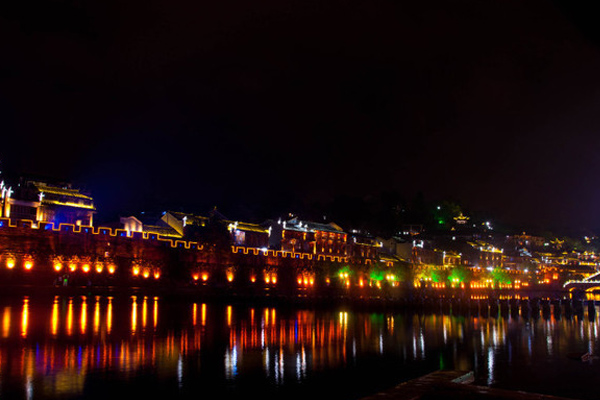 最后的旅游景點(diǎn)是鳳凰古城,常聽去過的人說(shuō):來(lái)鳳凰不僅要欣賞沱江兩岸若思迷幻的日景,更要欣賞沱江兩岸璀璨迷人的夜景,否則,你不算來(lái)過鳳凰。果不其然,鳳凰之美,一半在于夜景,隨著夜晚的降臨,風(fēng)凰古城到處燈火輝映,沱江邊的吊腳樓倒影在水中,萬(wàn)名塔和虹橋通體金黃,金碧輝煌如天上宮闕,兩相輝映,人間天堂。