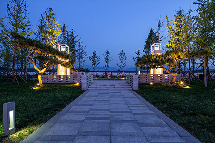一、在所有的景觀中,水景燈光是夜間照明的重要部分。夜間水景是燈光照射下的廣場(chǎng)景觀中最具魔幻的部分,可以在水體邊緣布置光線柔和的庭院燈,也可利用燈光的透射將岸邊樹(shù)木的倒影映射到水面上,從而獲得奇妙的水景效果。
