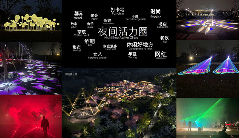 在方案設(shè)計(jì)過程中,我們首先從項(xiàng)目場(chǎng)地總體規(guī)劃的角度出發(fā),深入了解各地塊的區(qū)域功能、定位,使燈光系統(tǒng)盡可能考慮到所有地塊內(nèi)容,使其整體統(tǒng)一且獨(dú)具各自主題特色。我們特別注重于燈光環(huán)境對(duì)視覺生理的支持,用燈光創(chuàng)造可辨識(shí)的夜間環(huán)境;亮度、照度等量化指標(biāo)的給出有堅(jiān)實(shí)的理論基礎(chǔ),并與實(shí)際相符合。同時(shí)利用燈光對(duì)景觀結(jié)構(gòu)進(jìn)行重組,使其成為感知環(huán)境特色的工具。整體布局上呈現(xiàn)多元、有活力的夜景形態(tài),適應(yīng)多種夜間活動(dòng)的需要。