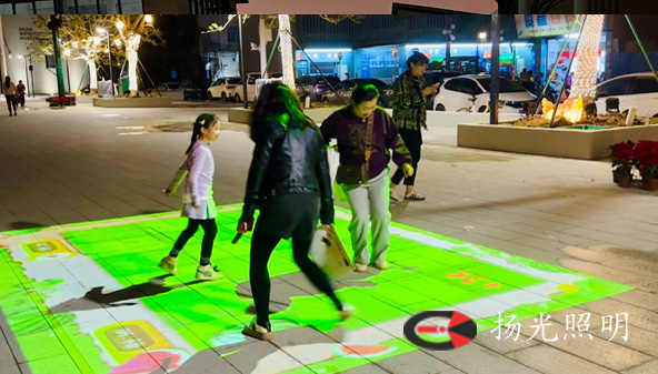 投影互動(dòng):利用投影設(shè)備將虛擬元素投射到地面或建筑物上,游客可以通過(guò)與虛擬元素的互動(dòng)來(lái)改變燈光效果。例如,游客可以在地面上踩踏虛擬元素,使其消失或變化。