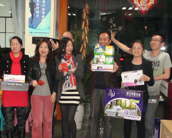 快樂會議中,有員工層抽獎活動,管理層抽獎活動以及唱歌,小品等多個節(jié)目,員工層和管理層的抽獎活動獎品豐富,有遠(yuǎn)夢夏被、高級茶葉、高級茶具、以及現(xiàn)金大獎等,活動現(xiàn)場受到大家的聲聲喝彩!同時,我們也為本月過生日的同事送上了鮮花以及全體員工的祝福,讓整個活動更顯溫馨!